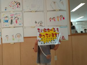 本日の写真は、娘の参観日でお店やさんごっこを行い、タイムセールの呼び込みを任された娘の姿です!